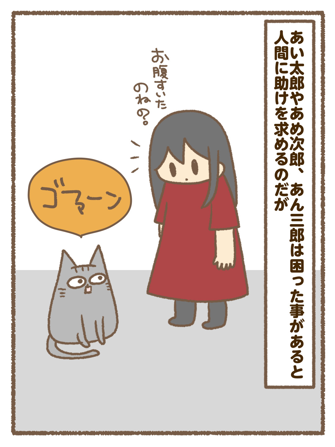 ご飯じゃなくても困ったら猫に助けを求める感じです。