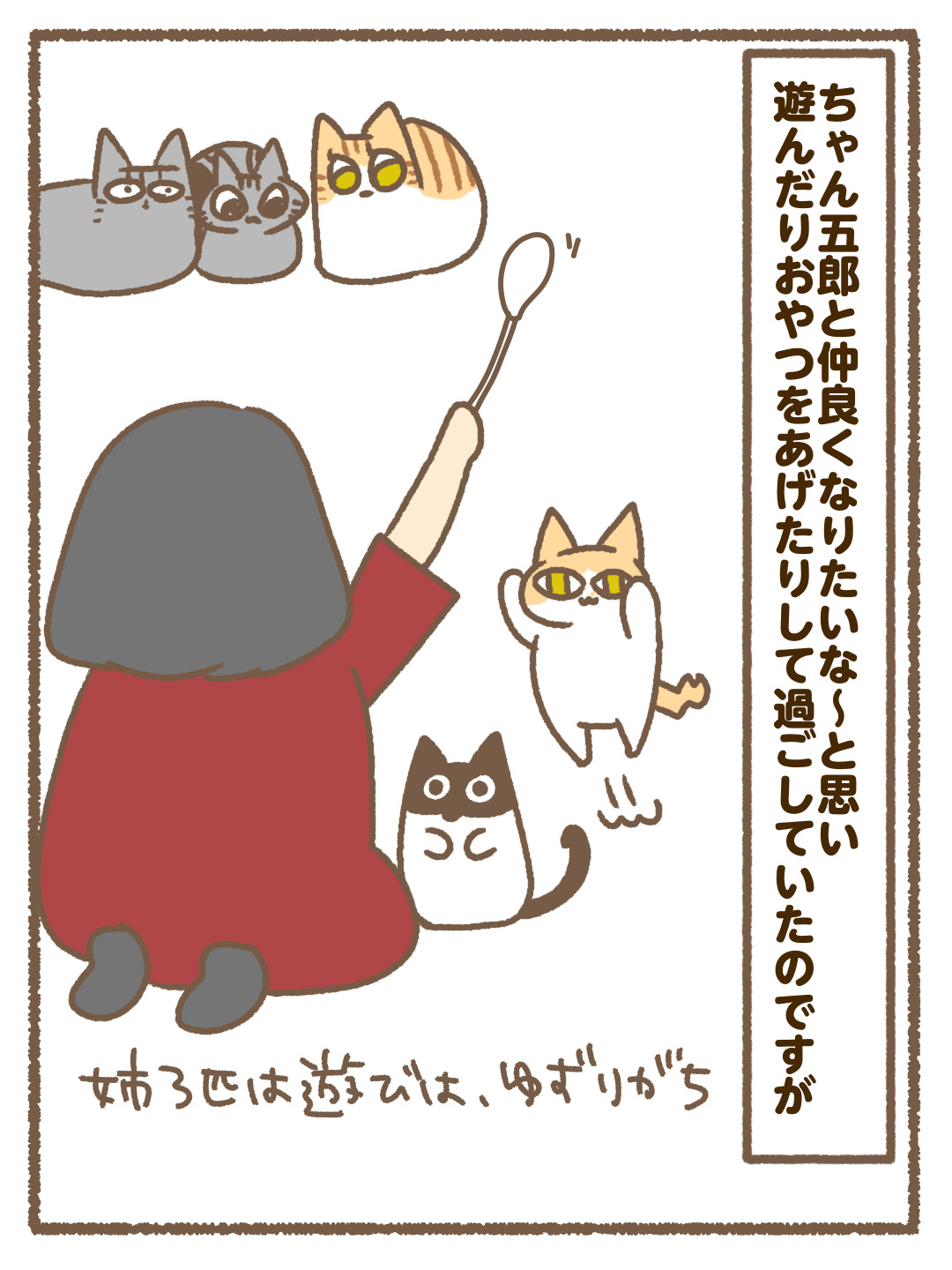 ぽん四郎とちゃん五郎が小さい頃は遊びは譲る姉猫達懐かしいです。