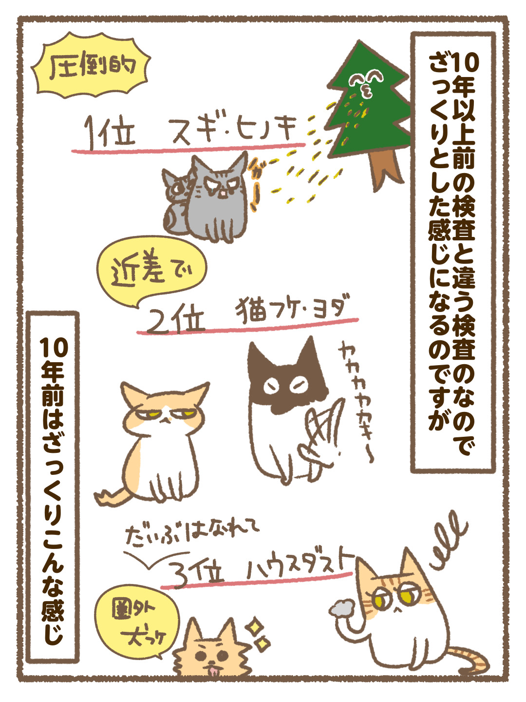 前はスギ・ヒノキの数値の方が高かったのですが今回は猫の方が高くなっていました。でもどっちも、ものすごい高いわけでないので良かったです。