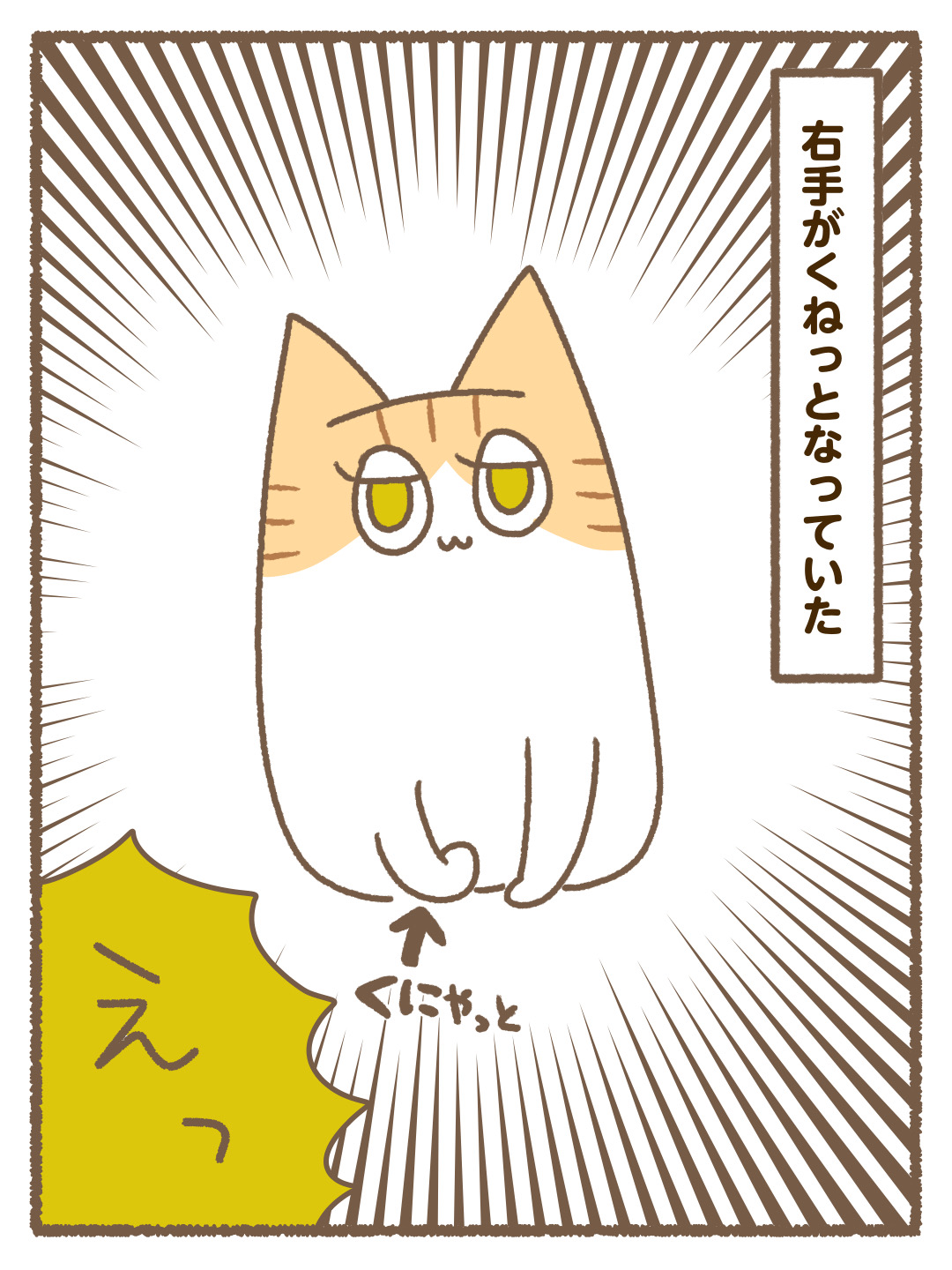 着地は失敗したもののすぐに立ちあがろうとしていたあん三郎でしたが腕がの様子がいつもと違いました。