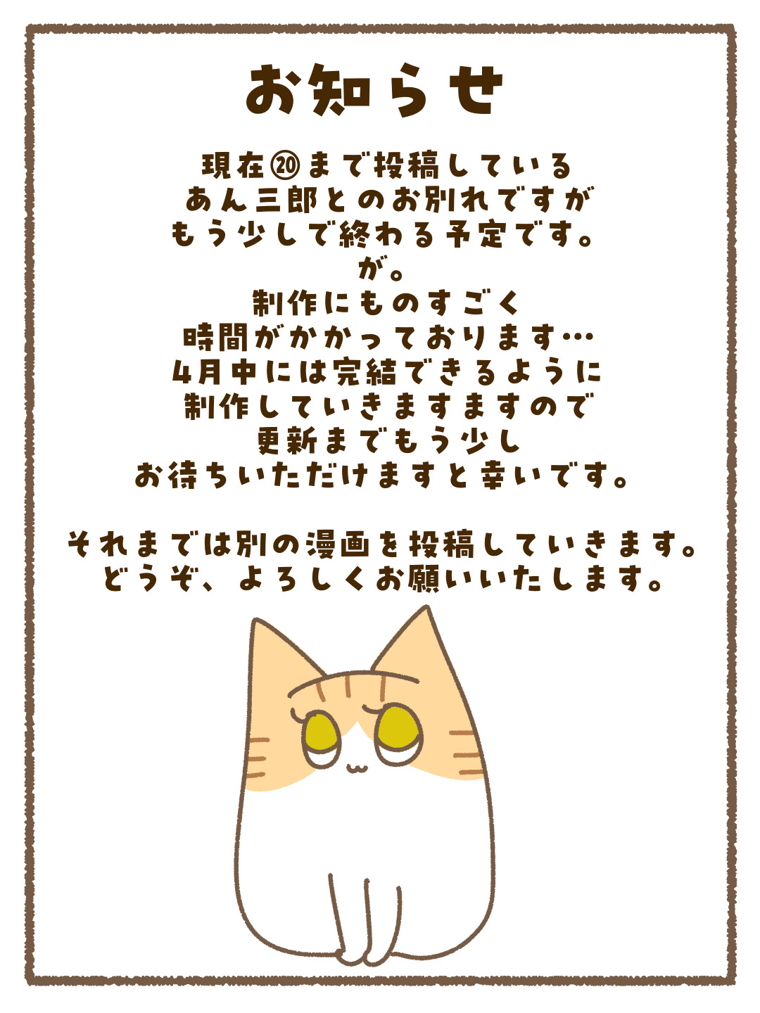 あん三郎とのお別れの投稿についてのお知らせ